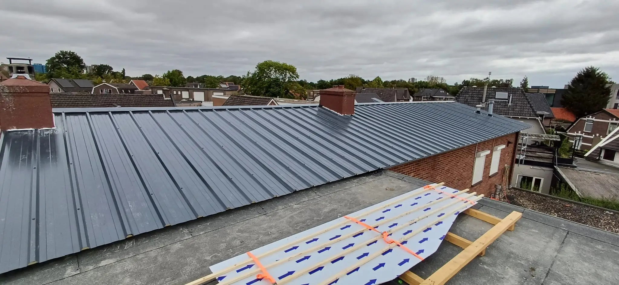 Voor een dakrenovatie in Apeldoorn hebben wij 140 m² dakbeplating geleverd en gemonteerd, met een uitstekende RC-waarde van 4.02 voor optimale isolatie en energie-efficiëntie.