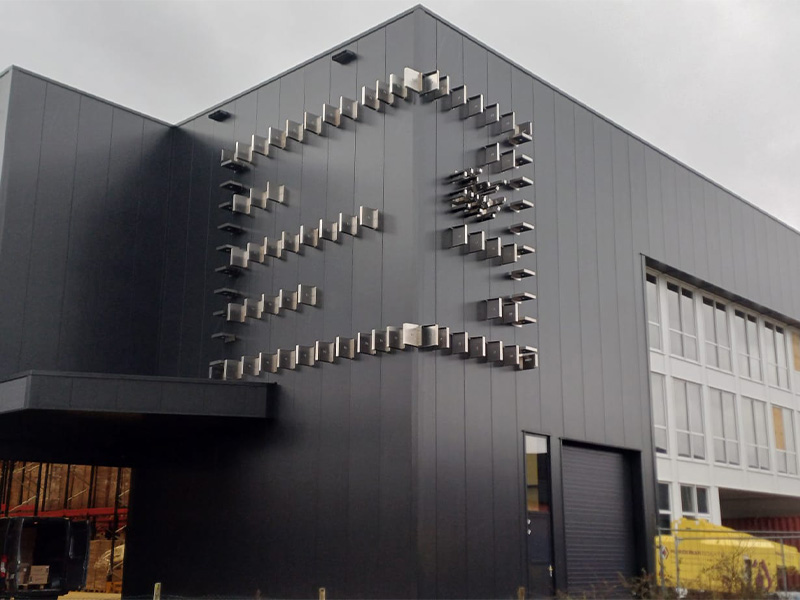 Daarnaast monteren we het zetwerk, wat zorgt voor een strakke en duurzame afwerking. Als eye catcher van het project monteerden wij aluminium composiet op de 24 meter hoge toren.